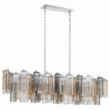 The captivating Addis Lighting Collection is a modern-day interpretation of the iconic mid-century Tronchi chandelier. Inspired by its predecessor's sleek lines and geometric shapes, the Addis features a polished nickel or Aged Brass metal frame that exudes sophistication and style. Its unique design showcases transparent tiers of textured Tronchi glass tubes, forming a mesmerizing 5-point rounded star shape. Choose from a range of glass colors, including clear, amber, smoke, and white, or the stunning Autumn option, which features a captivating multicolor disposition of amber, clear, and smoke Tronchi glass. The Addis Lighting Collection offers various sizes and finishes, allowing you to find the perfect fit for your space while adding a touch of timeless elegance. |