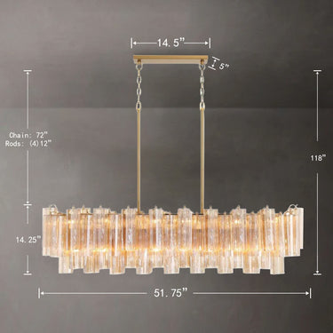 - Chandelier body: 51.75" W x 14.25" H x 14" D