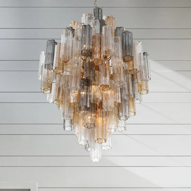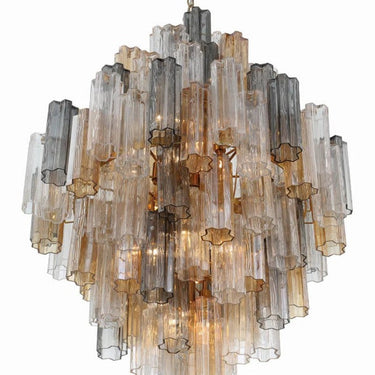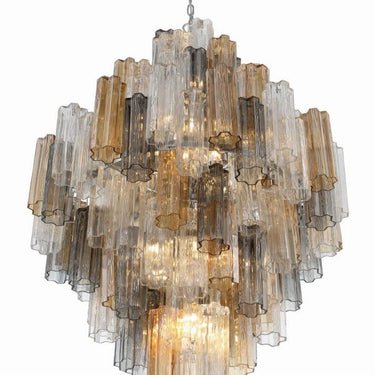The captivating Addis Lighting Collection is a modern-day interpretation of the iconic mid-century Tronchi chandelier. Inspired by its predecessor's sleek lines and geometric shapes, the Addis features a polished nickel or Aged Brass metal frame that exudes sophistication and style. Its unique design showcases transparent tiers of textured Tronchi glass tubes, forming a mesmerizing 5-point rounded star shape. Choose from a range of glass colors, including clear, amber, smoke, and white, or the stunning Autumn option, which features a captivating multicolor disposition of amber, clear, and smoke Tronchi glass. The Addis Lighting Collection offers various sizes and finishes, allowing you to find the perfect fit for your space while adding a touch of timeless elegance. |