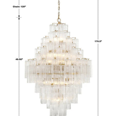 - Chandelier body: 31.5" W x 50.5" H x 31.5" D