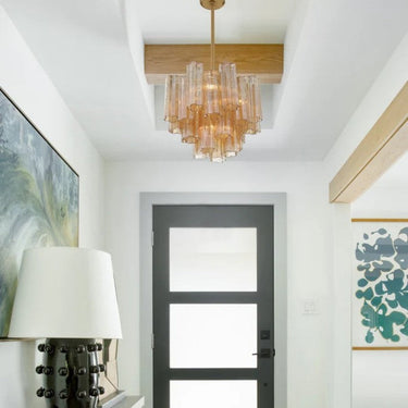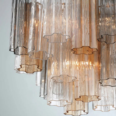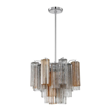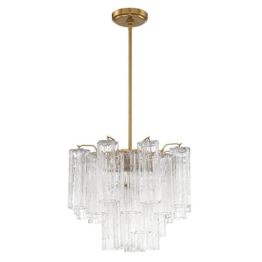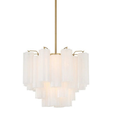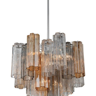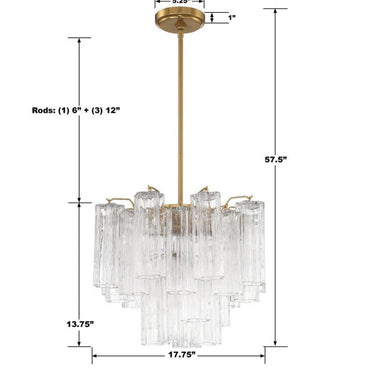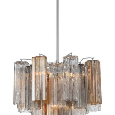 The captivating Addis Lighting Collection is a modern-day interpretation of the iconic mid-century Tronchi chandelier. Inspired by its predecessor's sleek lines and geometric shapes, the Addis features a polished nickel or Aged Brass metal frame that exudes sophistication and style. Its unique design showcases transparent tiers of textured Tronchi glass tubes, forming a mesmerizing 5-point rounded star shape. Choose from a range of glass colors, including clear, amber, smoke, and white, or the stunning Autumn option, which features a captivating multicolor disposition of amber, clear, and smoke Tronchi glass. The Addis Lighting Collection offers various sizes and finishes, allowing you to find the perfect fit for your space while adding a touch of timeless elegance. |