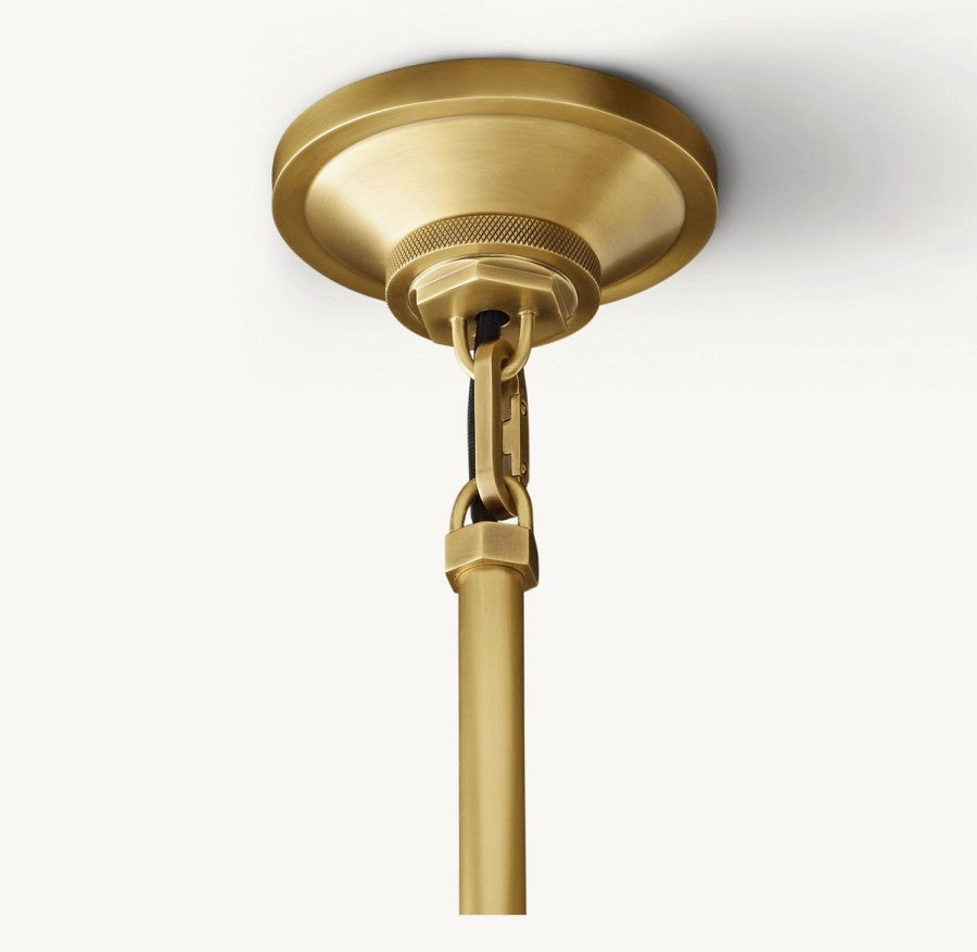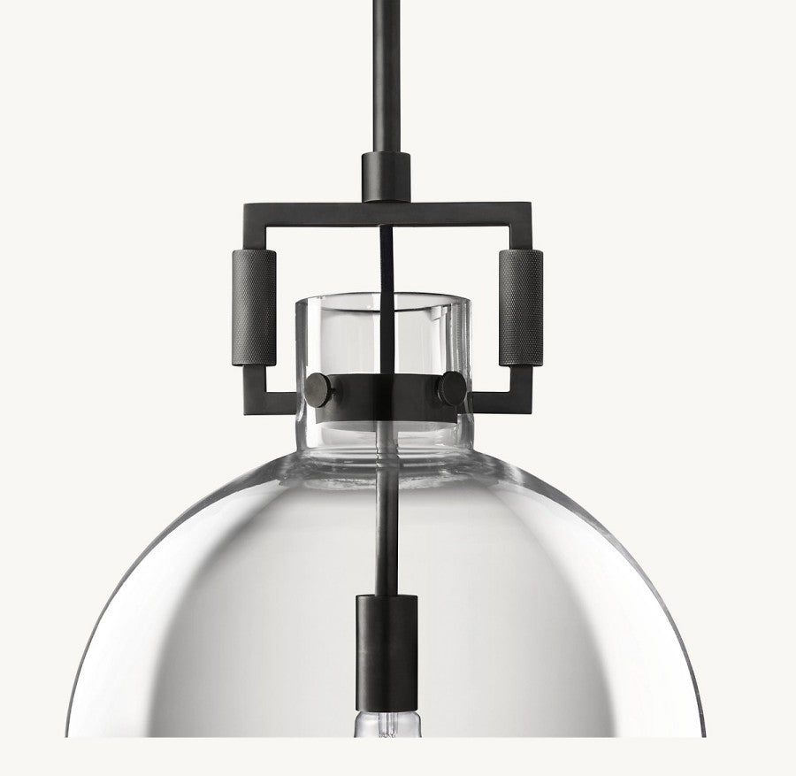 Inspired by mid-20th-century workshop and factory lighting, this collection bridges tradition and modernity. A classic dome shade is secured by a geometric metal yoke, defined by crisp angles, diamond-knurled details, and exposed bolts, showcasing precision craftsmanship with an industrial edge.